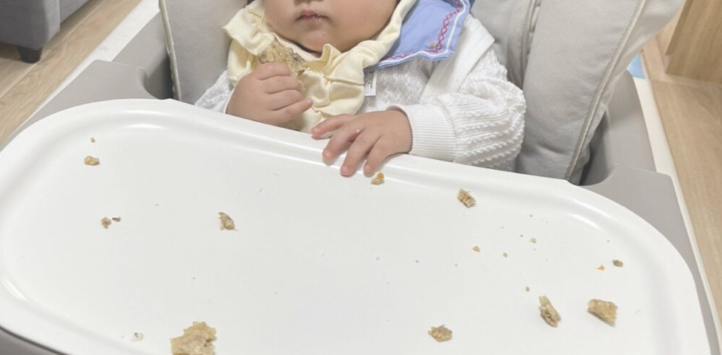 朝ごはんを食べながら離乳食を食べさせる🍚